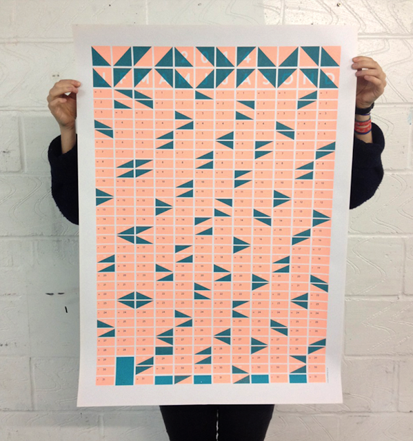 Vandling has simplified the calendar into vertical columns, using colour and shape to identify weekends and aid the viewer. The composition provides just enough space for the user to add events and annotations.